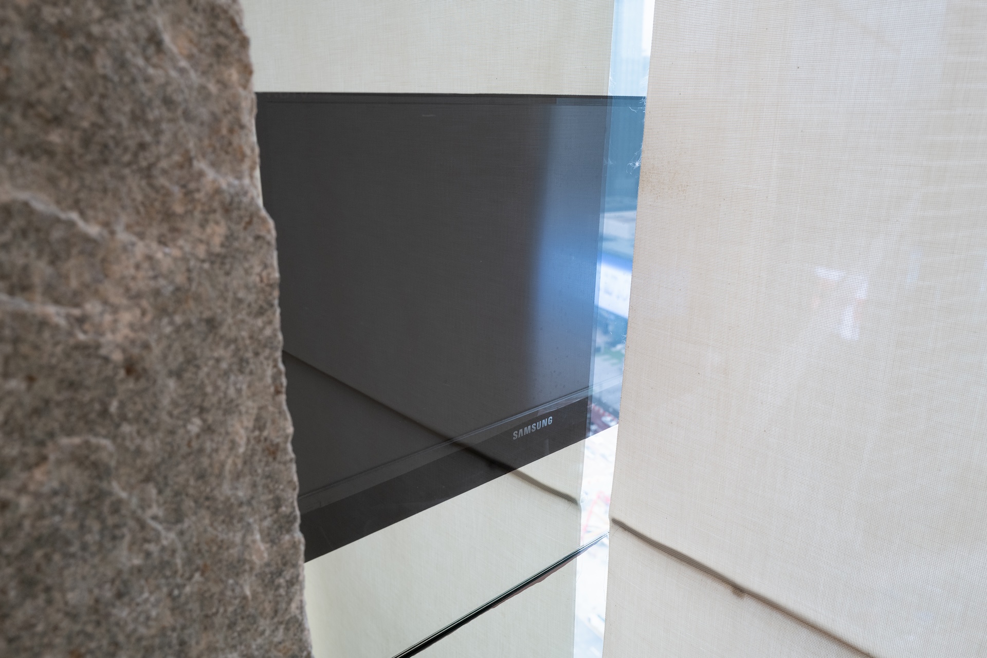 さらに、この部屋の位置が悪かったのか、斜め向かいの部屋(上下階含む)の中が丸見えで、常にシェードを下ろしていなければならないため、ガラス張りの部屋の利点は何も生かされていない、と言ってもいいでしょう。