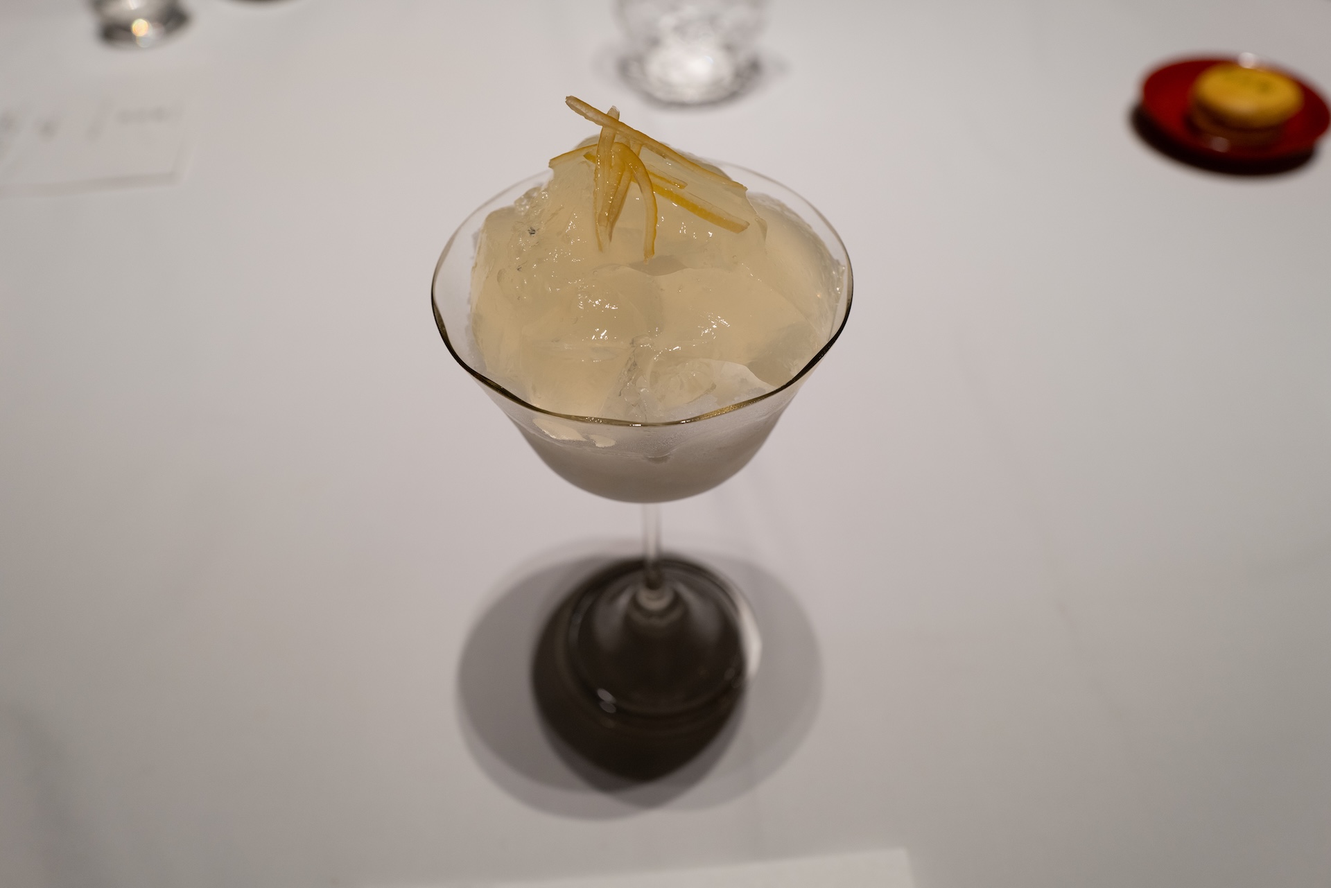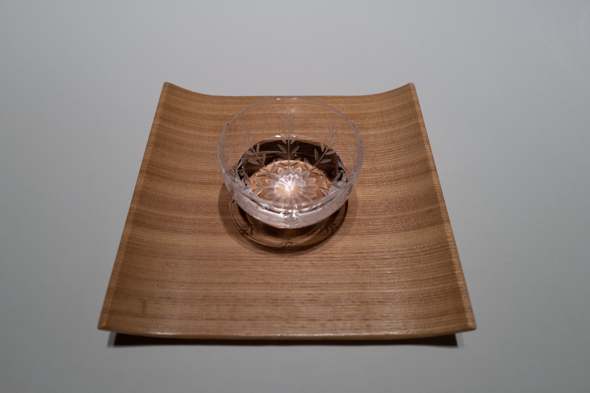 最初に運ばれてきたのは、淡く透き通った吟醸梅清酒