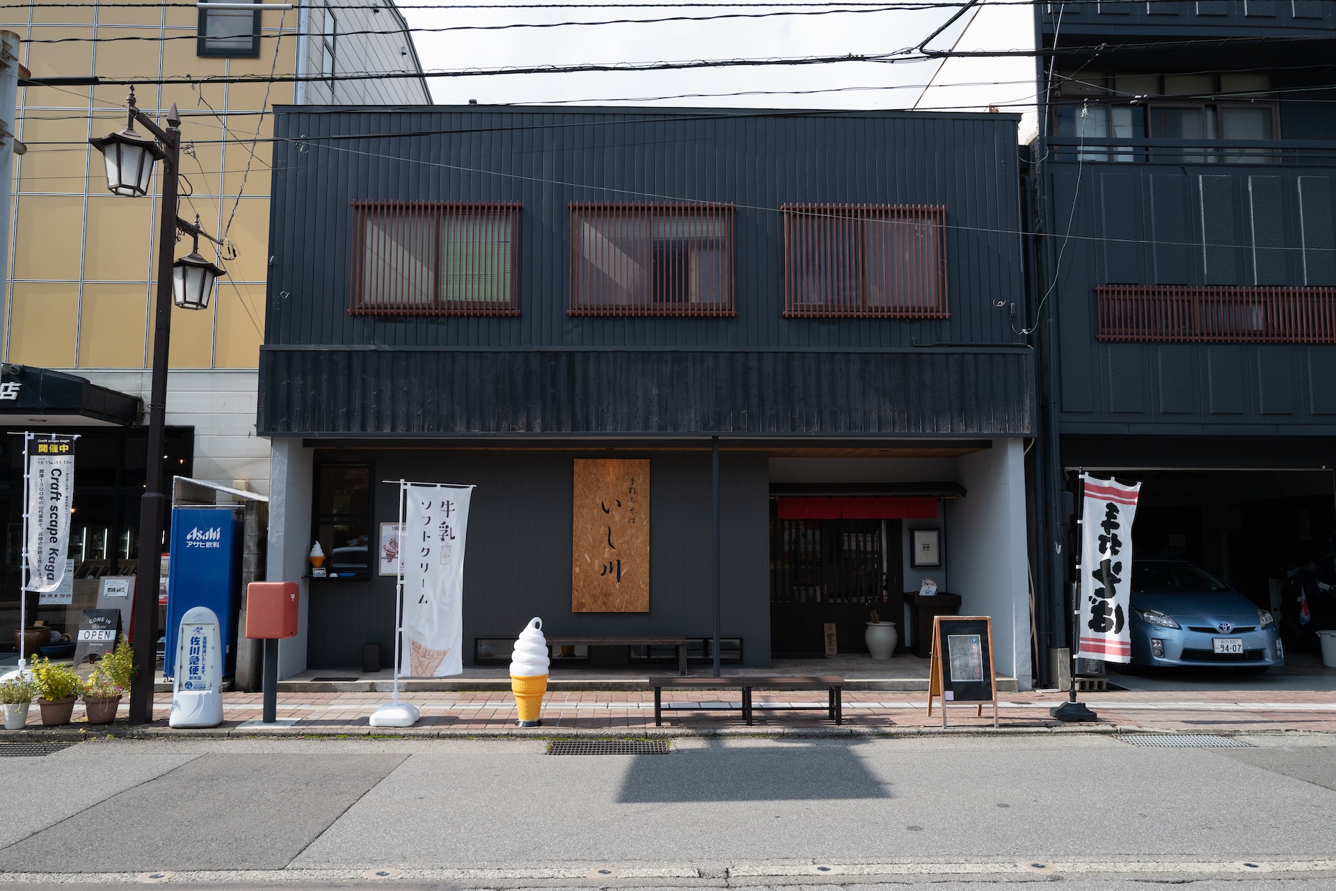 山代温泉の温泉通りに佇む「手打ちそば いし川」。