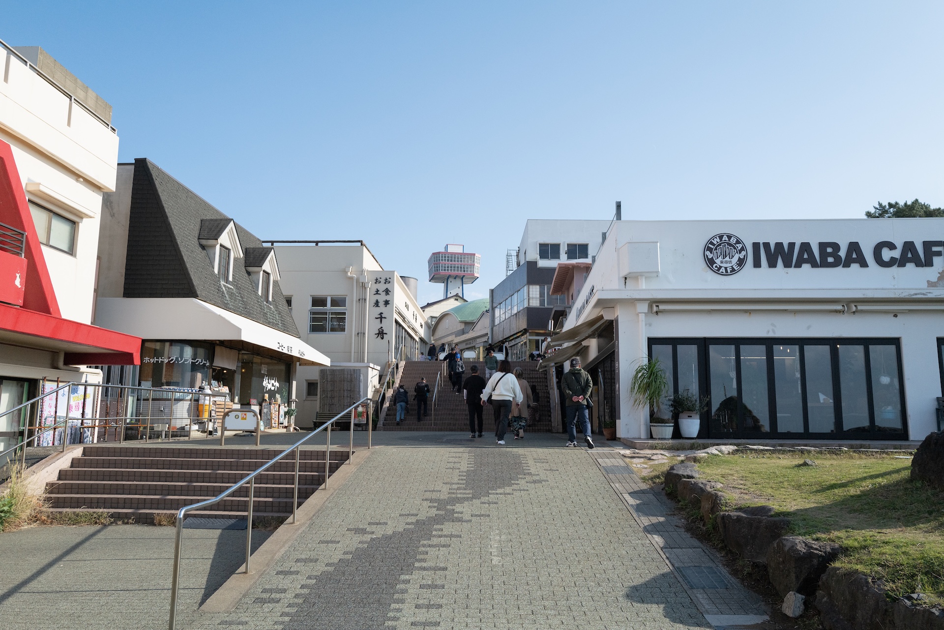 商店街のようにお土産屋や海鮮丼の店が並び、