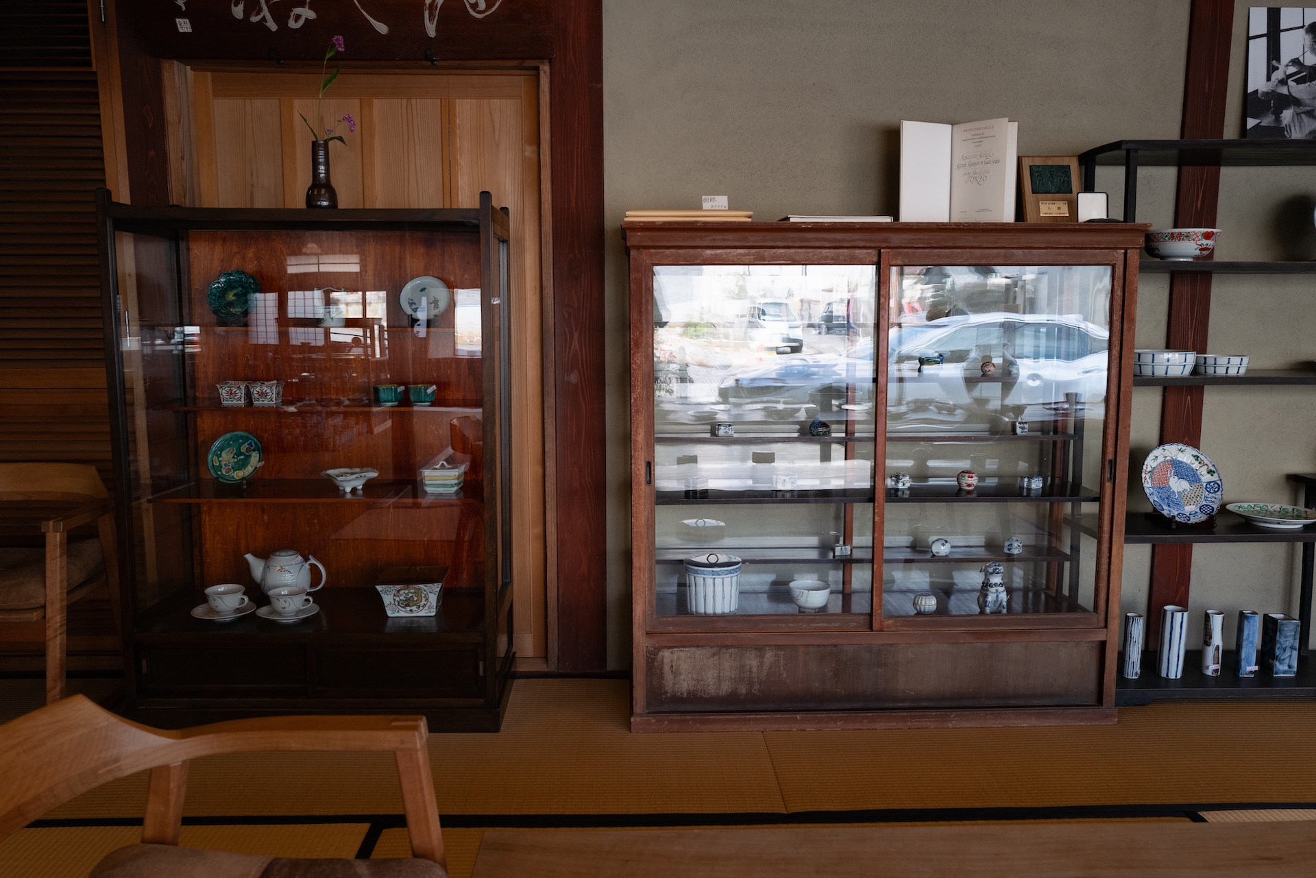 そしてガラスケースの前にも数々の器が展示されており、これがまた絵になる空間。