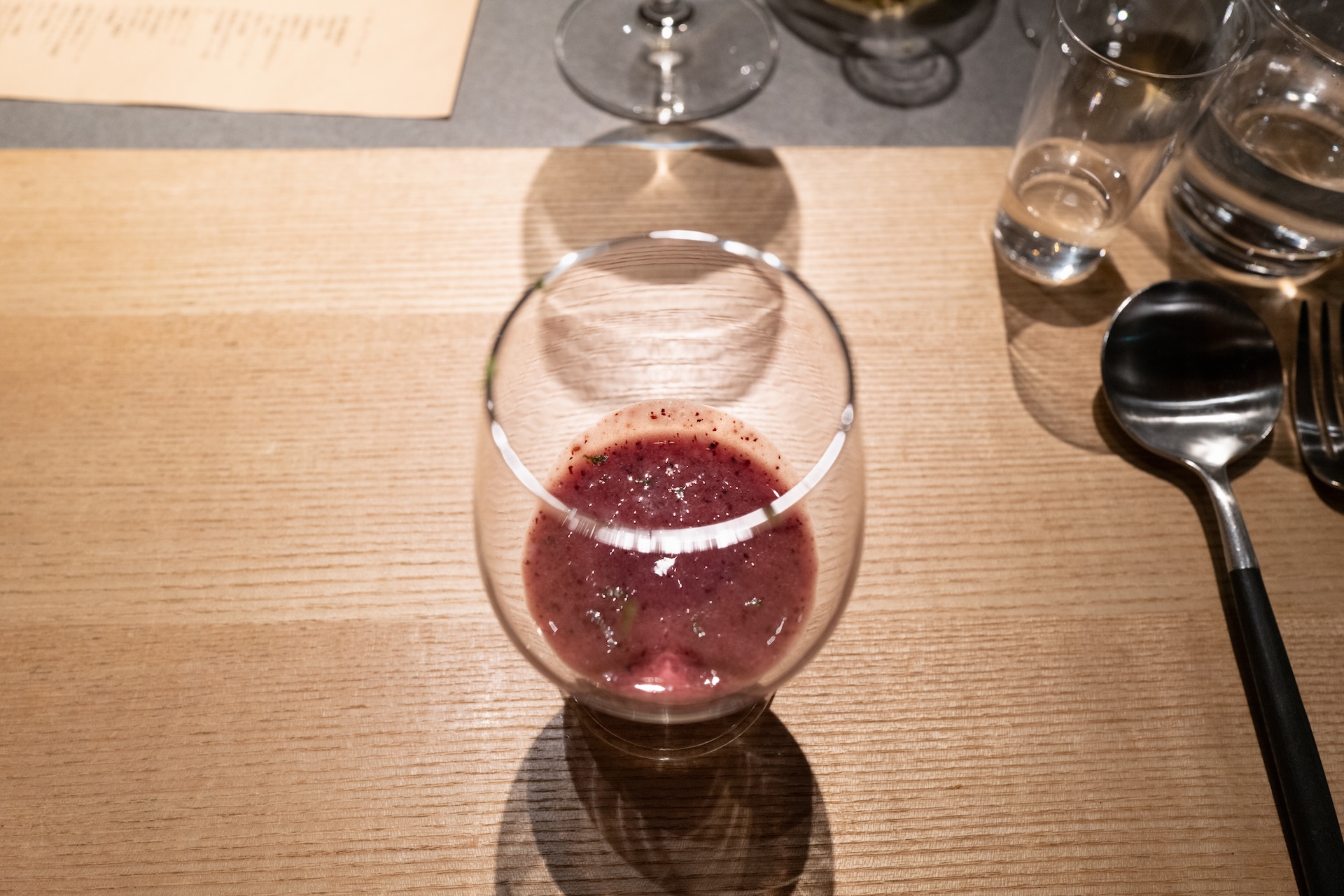 To finish, a refreshing fermented cocktail made with seasonal fruits is served. On this occasion, it was a berry smoothie, offering both flavor and gut-friendly benefits.