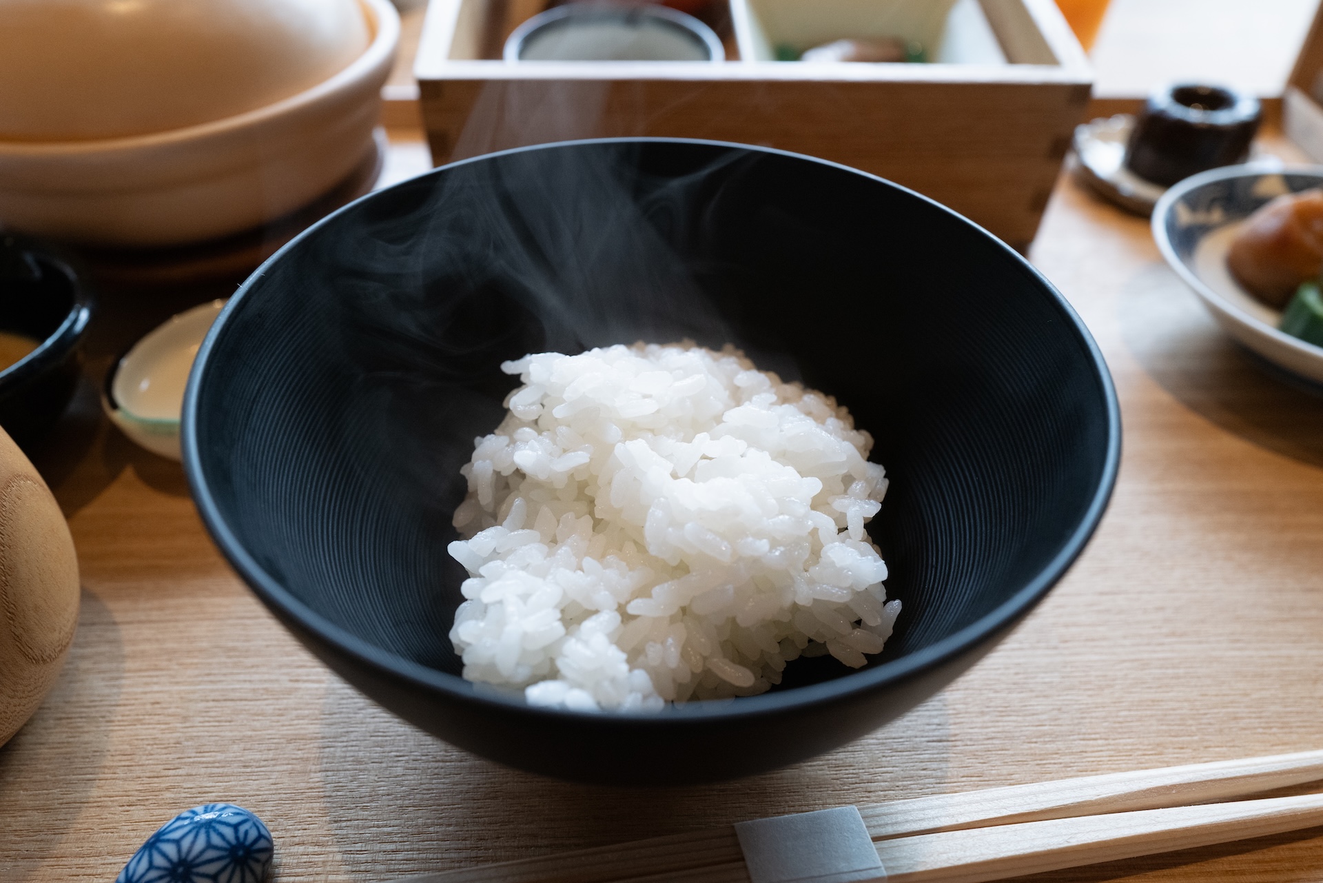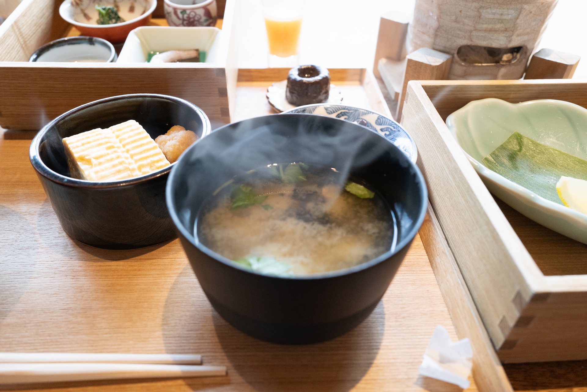 お味噌汁やご飯からは湯気が立ちのぼり、香りがふんわりと広がります。