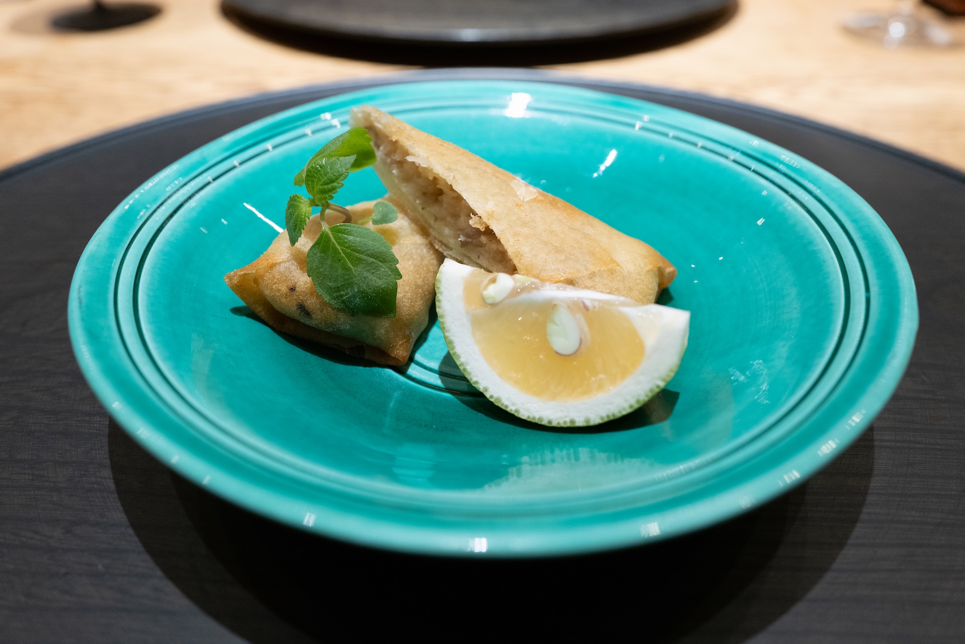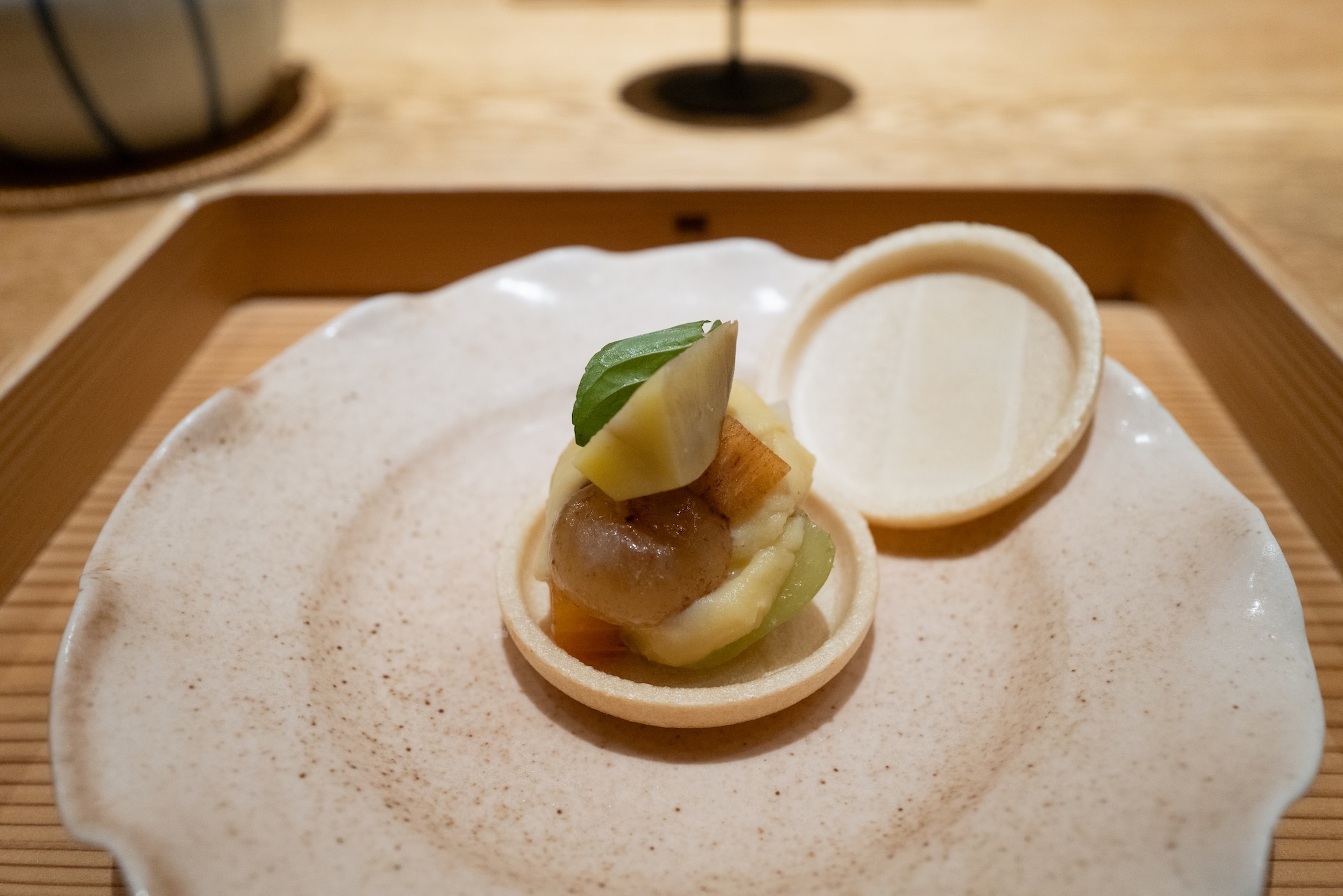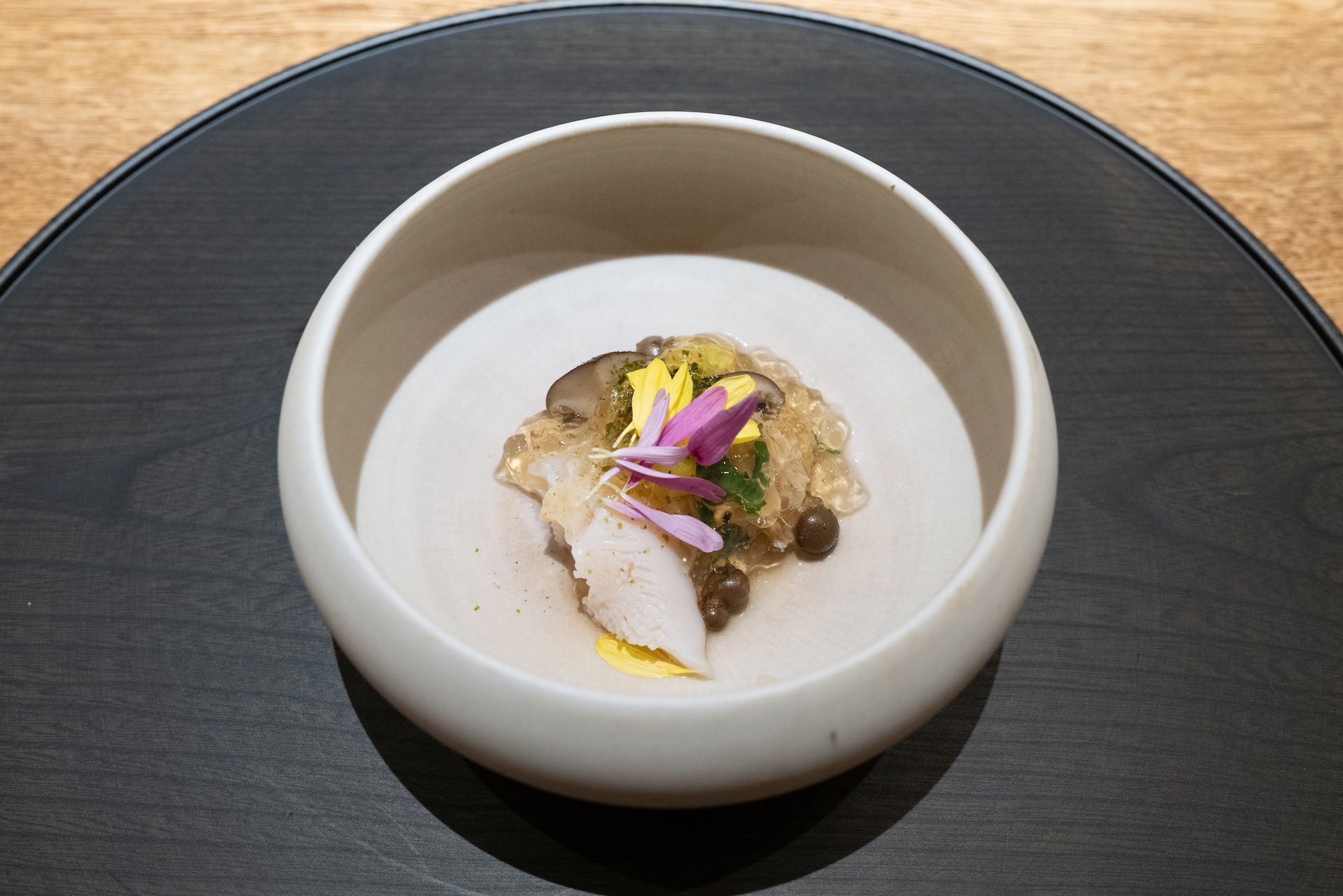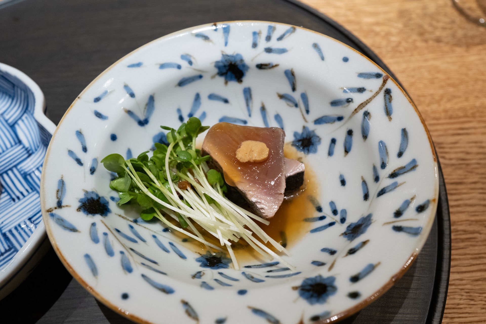 口に広がる旨みと甘みの対比が心地よい。器の美しさも印象的。