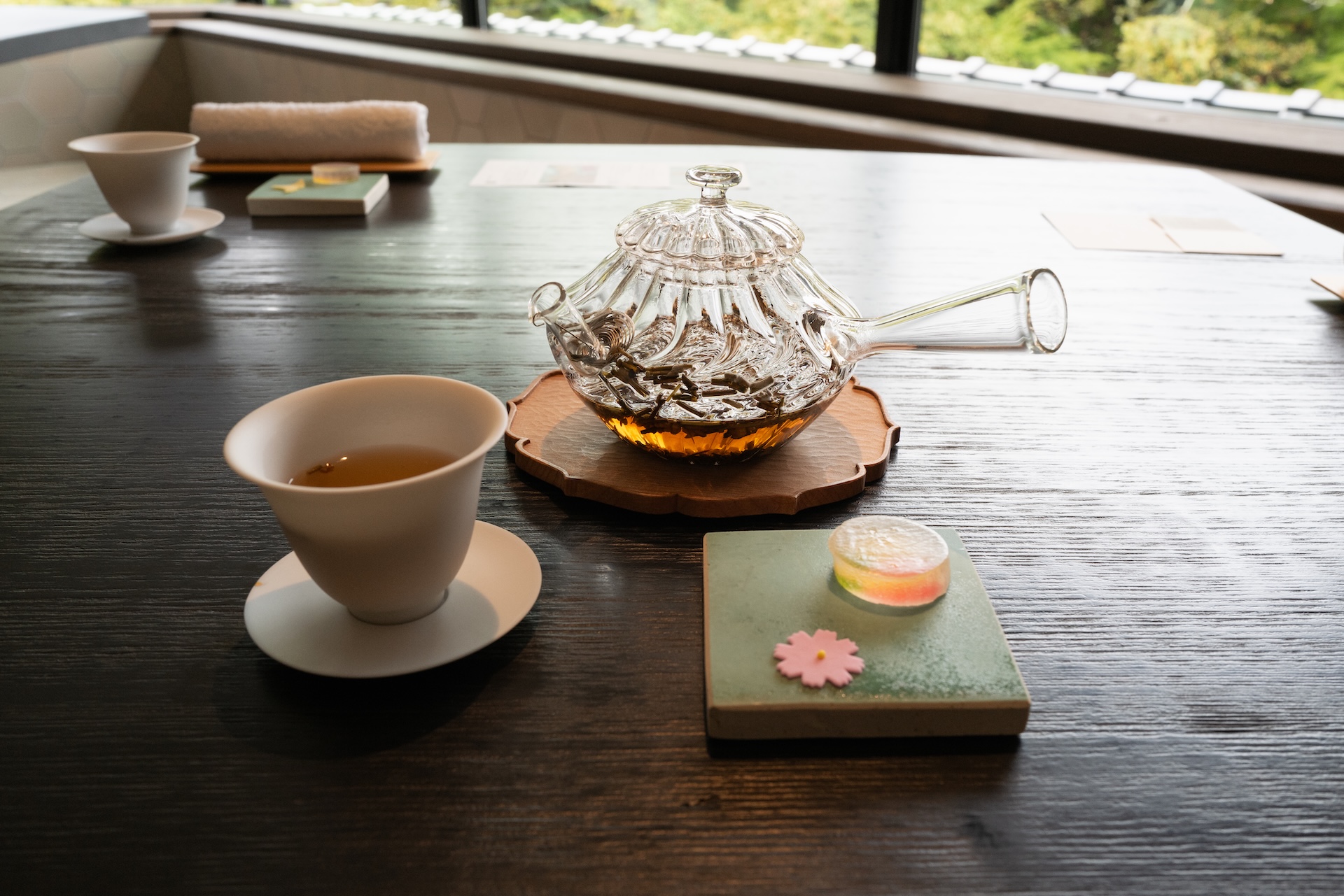 ロビーの横にはセンスの良いギャラリーのような物販コーナーや茶寮。チェックイン時には茶寮の割引券もいただけましたが、結局お部屋が居心地良すぎて利用せず…。これは次回の楽しみに取っておこうと思います。