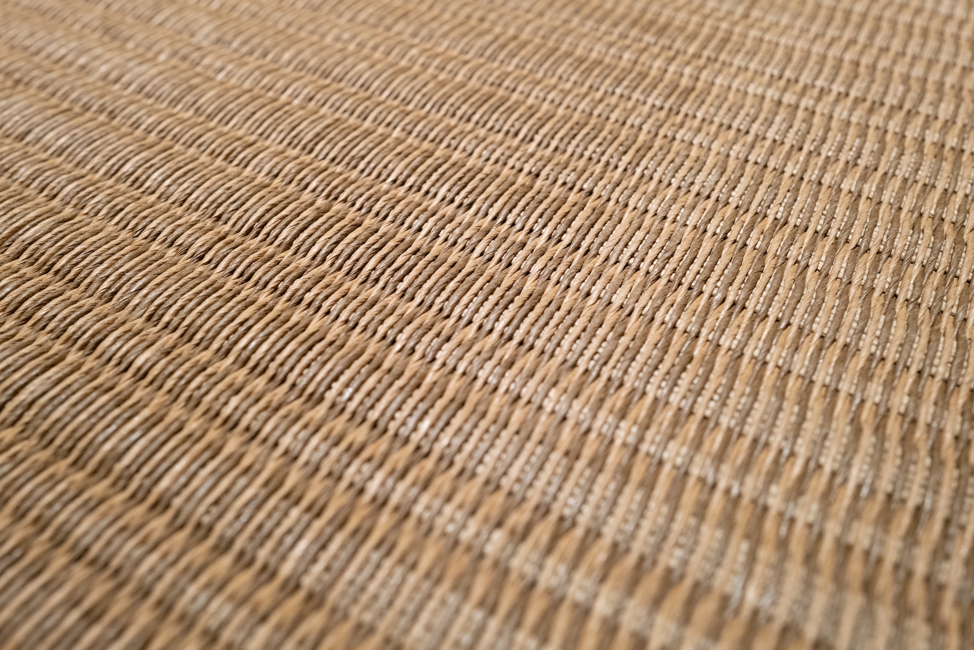 部屋全体は、手前に畳風のスペース 中央にリビングエリア 奥にベッドエリア という3段階のレイアウト。