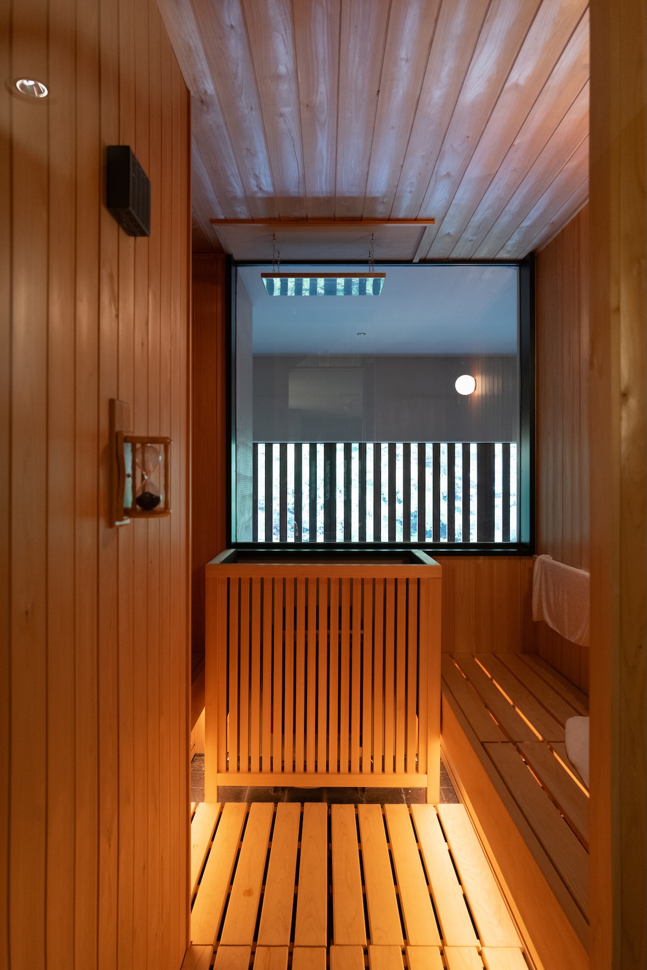 プライベートサウナは自分好みに温度調整可能。私たちは99度に設定しました。