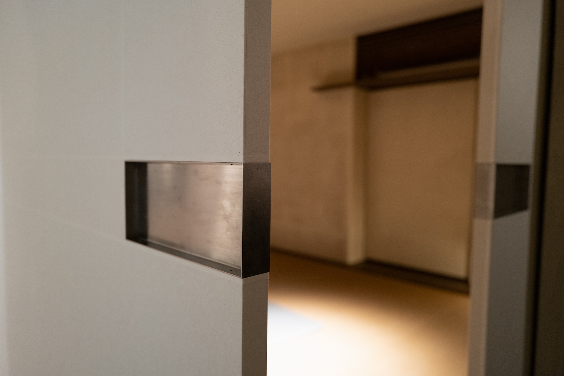 畳のお部屋は扉で仕切れるようになっていて、さらに、奥の扉の中にはお布団が納められていました。そして、この畳のお部屋の仕切り襖の表面素材が美しい。障子紙を貼ったような質感で、私も自宅の扉をこのように変身させたいなぁ、と思いました。
